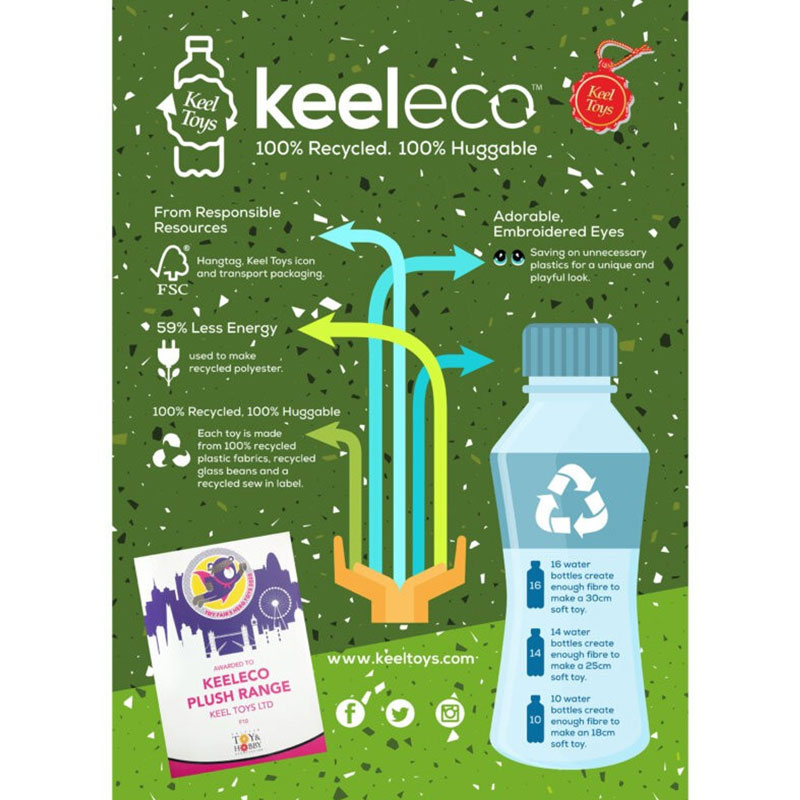 Made from 100% recycled materials, this super soft monkey comes with fluffy brown fur, cream muzzle, embroidered eyes, and stitched smile. Featuring a soft stripey cream ring rattle body. Perfect for little hands to clutch onto and shake to make a soft rattle sound, and great for sensory development.