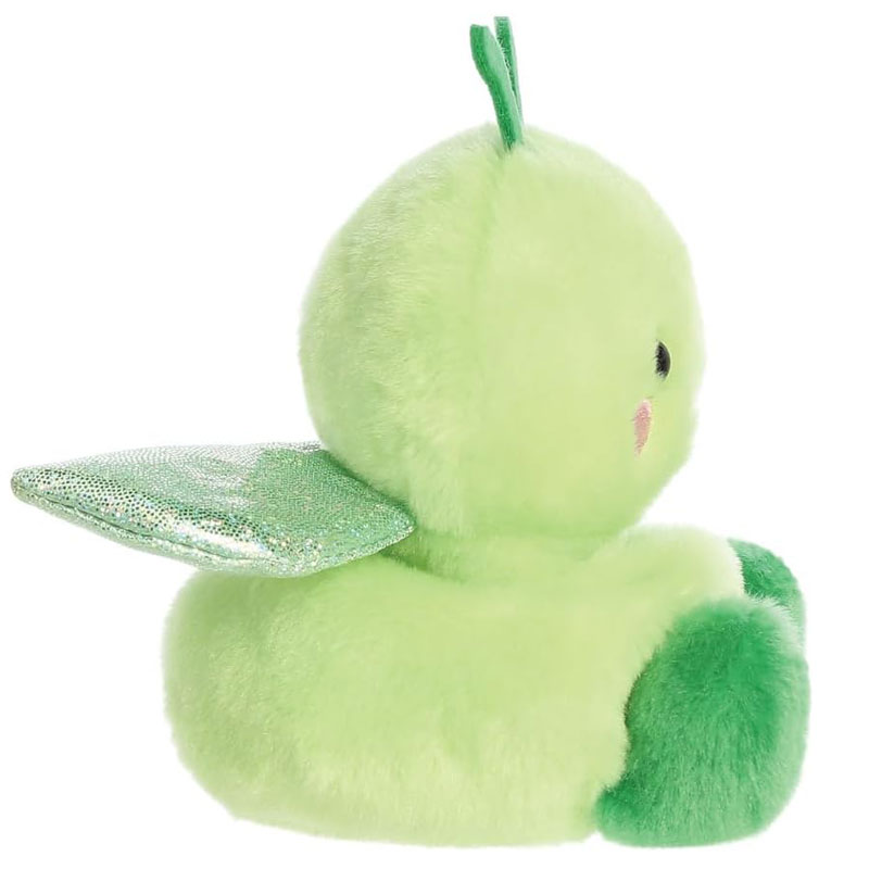 Coming in a soft lime-green plush fur body, with dark green feet and matching antennae, a cute smily grin and sparkly wings.
