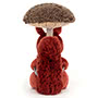 Jellycat Fungi Forager Squirrel. This little red squirrel comes with the characteristic thick bushy tail, alert pointed ears, delicate pink nose, a plump cream tummy and suedey feet. The really interesting part is the splendid mocha mushroom sticking out of the knitted rucksack, is this an umbrella, camouflage or tonight's feast? For a closer look at Jellycat's Fungi Forager Squirrel simply roll the mouse over the image. Do not tumble dry, dry clean or iron.