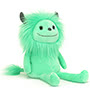 Jellycat Grizzo Gremlin. Coming with a ruffled green fur body, limey-green legs, hands and face, large suedey ears and little spiralled cordy horns. Did you know that a gremlin is a mischievous folkloric creature invented at the beginning of the 20th century to originally explain malfunctions in aircraft? This one is just soft and strangely cute! For a closer look at Jellycat's Grizzo Gremlin simply roll the mouse over the image. Do not tumble dry, dry clean or iron. Check all labels.