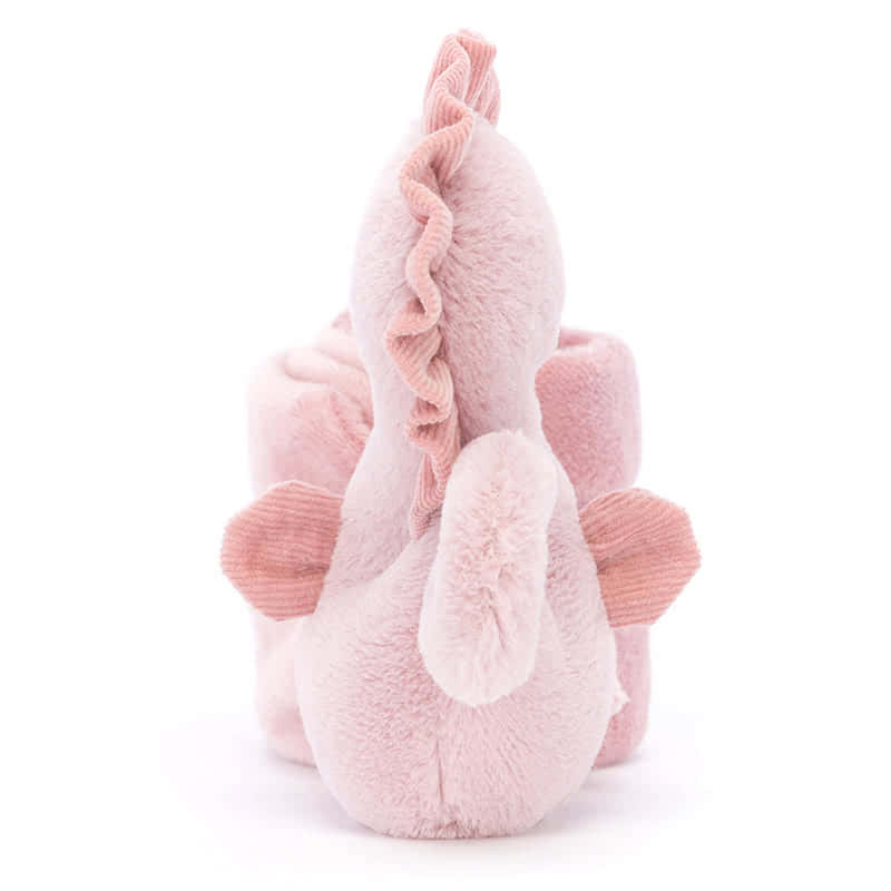 Jellycat Sienna Seahorse Soother. Little ones can enjoy nautical naptimes with the Sienna Seahorse Soother. Coming in super soft, cool pink fur with a little Sienna to watch over sleeping tots. For a closer look at Jellycat's Sienna Seahorse Soother, roll the mouse over the image. 40 degree Celsius wash only, do not tumble dry, dry clean or iron. Check all labels.