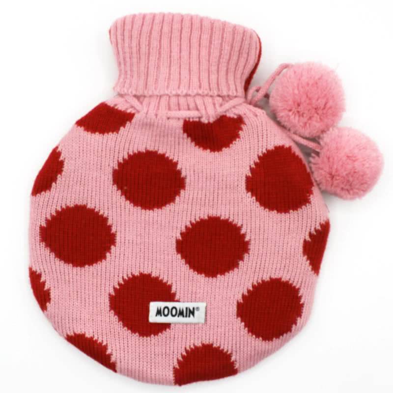Get cosy with this super statement embroidered Little My round hot water bottle. Perfect for a snuggly night in or as a gift for a Moomin fan in need of some comfort! Featuring a red and pink polka dot reverse, pink tied pom poms and hand embroidered stitched details!