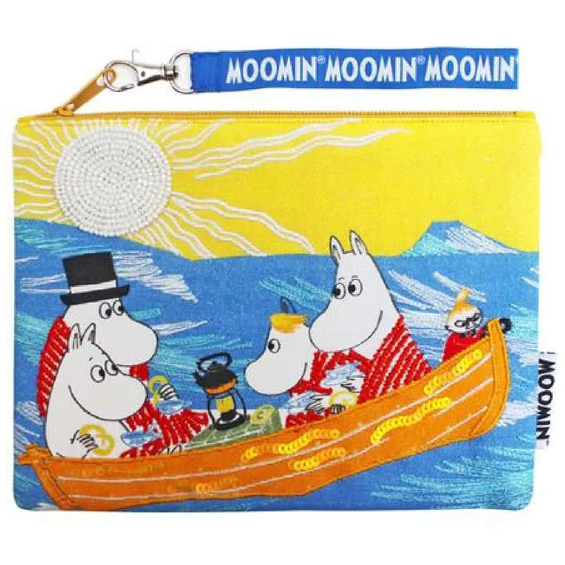 Introducing the 'Ocean Large Pouch' by Moomin. This cotton pouch has been beautifully embroidered and embellished. Perfect for storing all your essentials in, comes with super handy detatchable wriststrap. Featuring a really colourful scene with the Moomin family on an adventure on the ocean. A perfect gift for any Moomin fan! For a closer look at Moomin Ocean Large Pouch simply roll the mouse over the image.