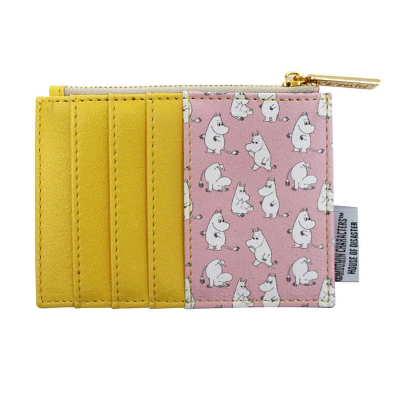 Introducing the 'Star Purse' by Moomin. This very handy accessory, features a cute metal cast Moomin logo zip pull for the main compartment. There are also four card slots with a printed pink and yellow Moomin repeat reverse. It's a compact shape to fit in your pocket or small handbag, making it super easy and convenient to carry cash and cards. Featuring an adorable illustration of Moomin on the front and back, with a Moomin fabric tag attached on the side.