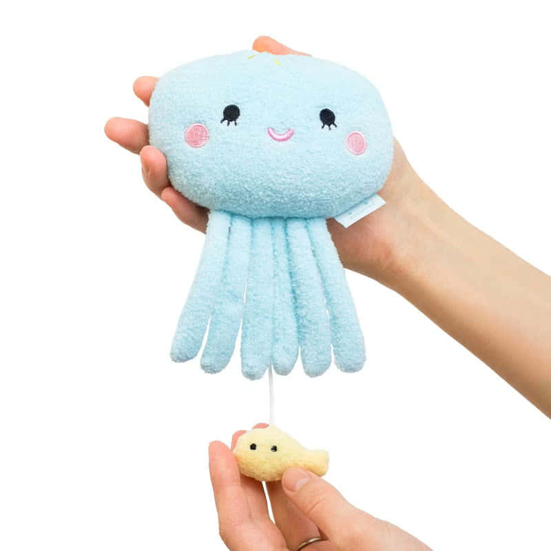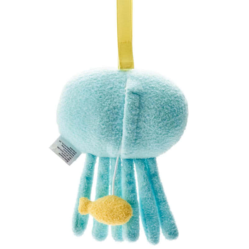 This cute blue jellyfish is made with soft fabric, and plays Rock a Bye Baby when the fishy cord is pulled. The handy strap makes it easy to attach to a pram, car seat or cot, a perfect companion day or night. The music box is removable for cleaning the toy.
