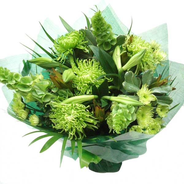 For a closer look at this gorgeous vibrant green hand tied fresh flower bouquet simply roll the mouse over the image.