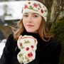 These Lugano handwarmers feature intricate hand embroidered flowers, an elegant addition to any wardrobe. They are ideal for keeping your fingers free and hands cosy.