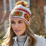 This beautiful hand crocheted beanie is hand knitted in Nepal by local villagers using local wools and natural dyes.