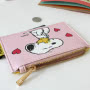 An adorable zip purse featuring two of our favourite Peanuts characters; Snoopy and Woodstock! Coming in pale pink PVC, it features a cute illustration of Snoopy & Woodstock on one side and a repeating ‘love’ typographic pattern with contrasting pink & yellow card slots on the reverse.