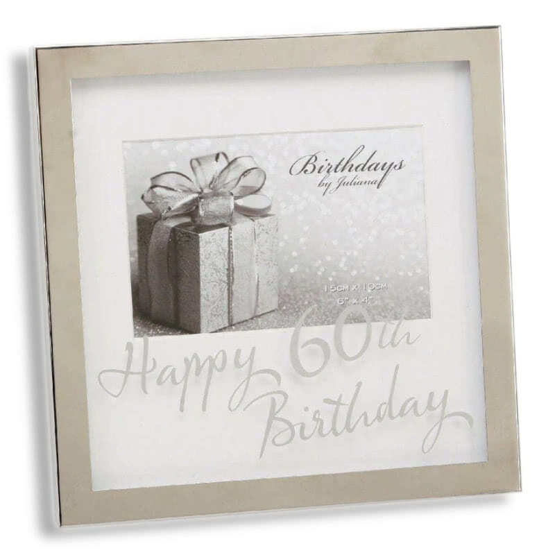 This is the Happy 60th Birthday Photo Frame by Widdop Bingham from the 'Impressions by Juliana' collection. Featuring silver foil scripted font with a silver plated frame around the edge to add an elegant touch. This photo frame will look lovely in any room. A great piece of décor to remember a special birthday. If you would like a closer look at Happy 60th Birthday Photo Frame simply roll the mouse over the image.