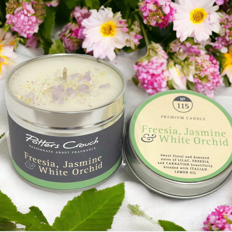 Introducing Potters Crouch Freesia, Jasmine & White Orchid Scented Candle.