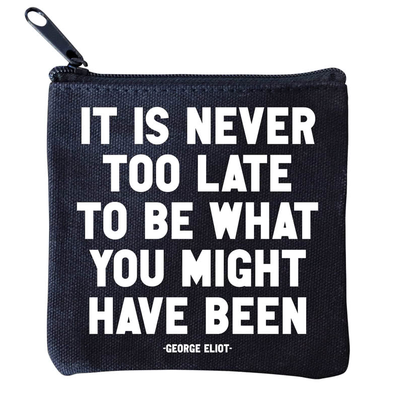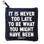 Introducing the 'Mini Pouch Its Never Too Late' by Quotable. Made from 100% cotton with a zip closure, printed with a quote, guaranteed to make you think, smile, or learn something new! Suitable for travel or everyday use, perfectly sized as a coin purse, for your lipstick, or simply odds and ends, it fits perfectly into a handbag and it's machine washable. If you would like a closer look at Mini Pouch Its Never Too Late simply roll the mouse over the image.