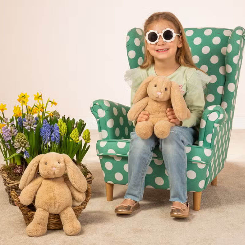 Coming in a rich caramel brown, soft fur body with a cute pink nose, and long floppy ears.