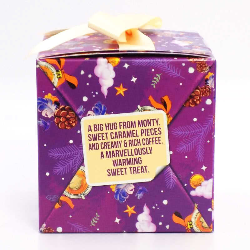 These are the Caramel Latte Truffles Gift Wrap Present by Monty Bojangles. A delicious Caramel Latte flavour cocoa dusted truffles perfect for those colder evenings. Coming in a cute gift box, with ribbon and festively beautiful design! There is also a gift label on the side to personalise. If you would like a closer look at Caramel Latte Truffles Gift Box simply roll the mouse over the image.